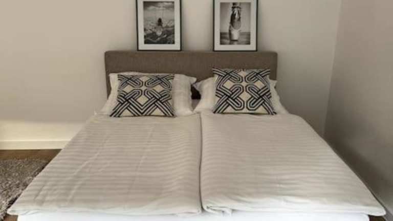 Die Wohnung umfasst 2 Schlafzimmer und eine ausgestattete Küche, die mit einem Kühlschrank und einem Geschirrspüler versehen ist. Ein Badezimmer mit Dusche, kostenlosen Pflegeprodukten und einer Waschmaschine steht ebenfalls zur Verfügung. Handtücher und Bettwäsche werden bereitgestellt.