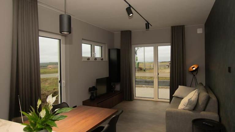 Die Ferienwohnung ist mit 1 Schlafzimmer, einer Küchenzeile, die mit einem Kühlschrank und einem Geschirrspüler ausgestattet ist, einem Flachbild-TV, einem Sitzbereich und einem Badezimmer mit Dusche eingerichtet. Handtücher und Bettwäsche werden zur Verfügung gestellt. Eine Terrasse ist ebenfalls vorhanden.
