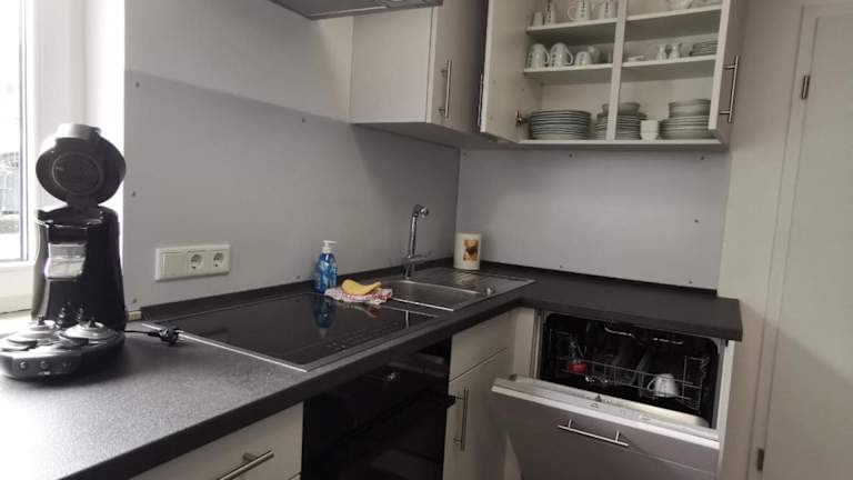 Die Ferienwohnung besteht aus einem Schlafzimmer, einem Wohnzimmer und einer voll ausgestatteten Küche, die mit einem Kühlschrank und einer Kaffeemaschine ausgestattet ist. Das Badezimmer ist mit einer Badewanne oder Dusche ausgestattet. Handtücher und Bettwäsche werden zur Verfügung gestellt.