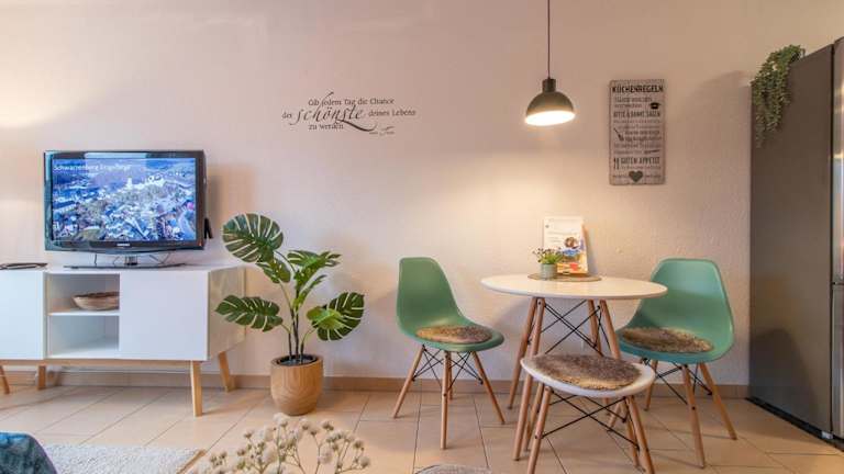 Die Unterkunft befindet sich in Schwarzenberg, in der Nähe des Fichtelbergs, welcher lediglich 25 km entfernt ist. Die Umgebung bietet Möglichkeiten für Wanderungen und ist durch die Nähe zu Sehenswürdigkeiten wie der Deutschen Raumfahrtausstellung und Sachsenring charakterisiert.