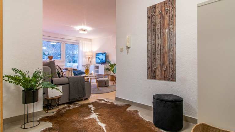 Das moderne Apartment im Grünen bietet Übernachtungsmöglichkeiten mit bergblick und verfügt über Annehmlichkeiten wie kostenfreies WLAN und einen eigenen Parkplatz.