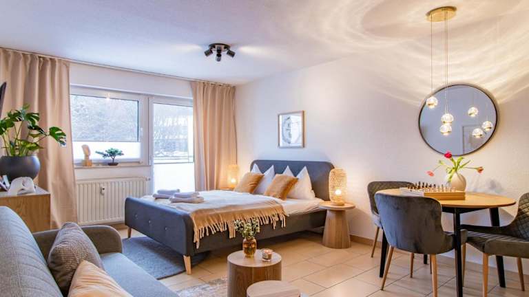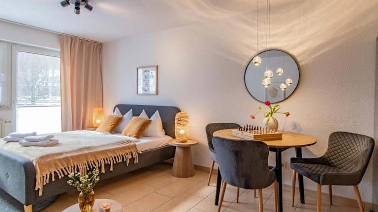 Das Apartment ist mit einem Balkon ausgestattet und bietet eine gehobene Ausstattung, die unter anderem einen Satelliten-Flachbild-TV, eine voll ausgestattete Küche mit Kühlschrank, Ofen und Herdplatte sowie ein Badezimmer mit Dusche, kostenlosen Pflegeprodukten und Haartrockner umfasst.