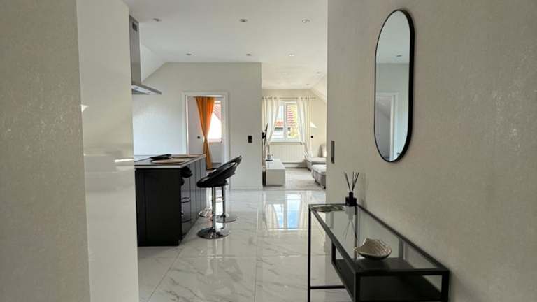Das moderne Apartment in Wald- und Stadtnähe bietet Übernachtungsmöglichkeiten in einer Ferienwohnung. Die Unterkunft umfasst ein Restaurant und garantiert kostenloses WLAN in den gesamten Räumlichkeiten. Die Ferienwohnung ist u.a. mit einem Flachbild-TV ausgestattet.
