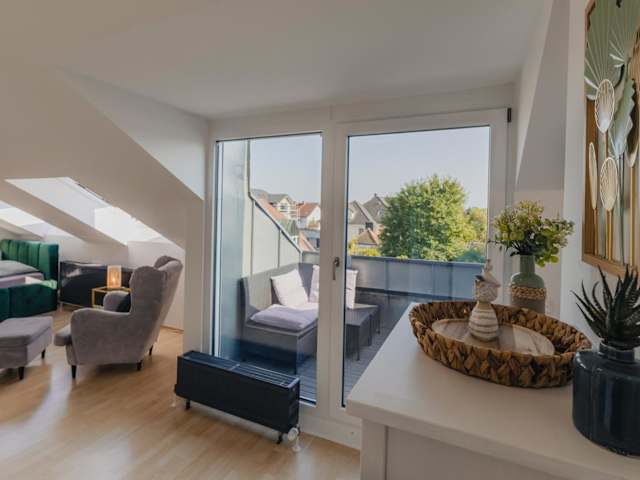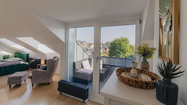Modernes Balkon Apart 'One' bietet Übernachtungsmöglichkeiten im Hochparterre mit Balkon. Die Ferienwohnung ist mit kostenlosem WLAN ausgestattet und ermöglicht einen komfortablen Aufenthalt. Die Einrichtung ist modern und bietet eine Terrasse sowie einen kostenlosen Privatparkplatz.
