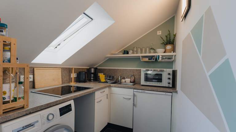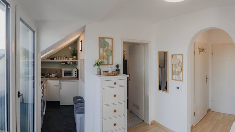 Die Ferienwohnung verfügt über ein Schlafzimmer, eine Küche mit Kühlschrank und Mikrowelle sowie ein Badezimmer mit Dusche, Haartrockner und Waschmaschine. Handtücher und Bettwäsche sind im Preis inbegriffen. Die Unterkunft ist schallisoliert und Nichtraucherzimmer sind vorhanden.