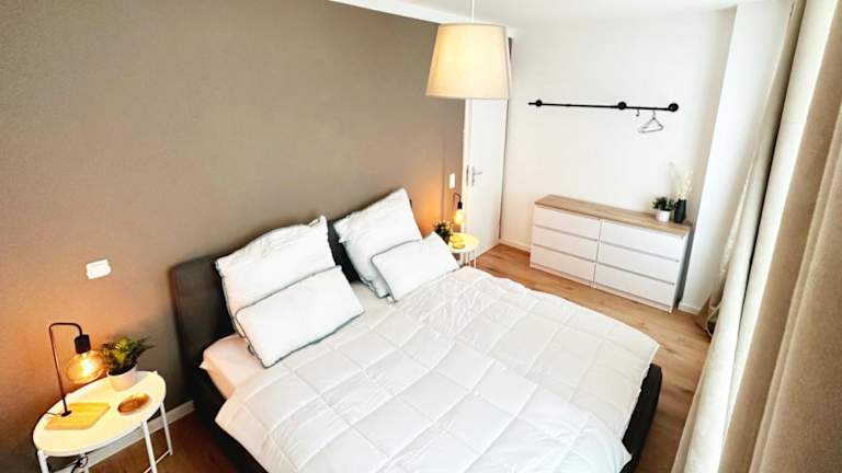 Die Ferienwohnung umfasst 1 Schlafzimmer und eine Küche, die mit einem Kühlschrank und einem Geschirrspüler ausgestattet ist. Ein Flachbild-TV, ein Sitzbereich sowie ein Badezimmer mit Dusche gehören ebenfalls zur Ausstattung. Handtücher und Bettwäsche werden zur Verfügung gestellt.