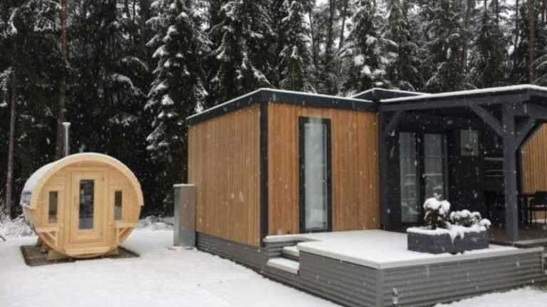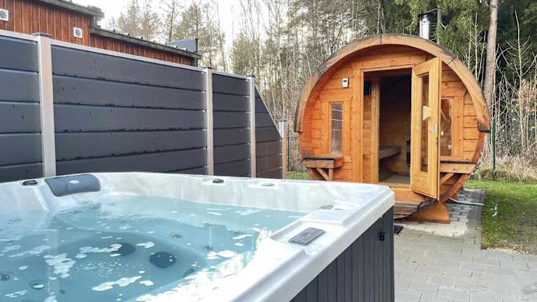 Modernes Mobilheim am See mit Fass-Sauna und Whirlpool WA104