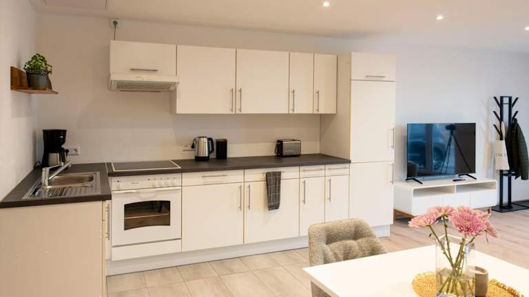 Die Ferienwohnung bietet ein Schlafzimmer, eine voll ausgestattete Küche mit Kühlschrank und Ofen, sowie ein Badezimmer mit Dusche. Zu den Annehmlichkeiten zählen ein Flachbild-TV und ein Sitzbereich. Handtücher und Bettwäsche werden zur Verfügung gestellt. Das Apartment verfügt über Familienzimmer und bietet einen Privatparkplatz, der im Preis enthalten ist.