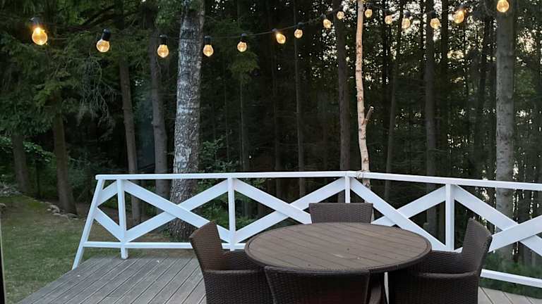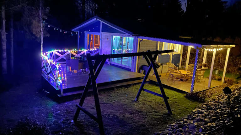 Das Ferienhaus besteht aus einem Schlafzimmer, einem Wohnzimmer und einer gut ausgestatteten Küchenzeile mit Kühlschrank und Herdplatte. Handtücher und Bettwäsche werden bereitgestellt.