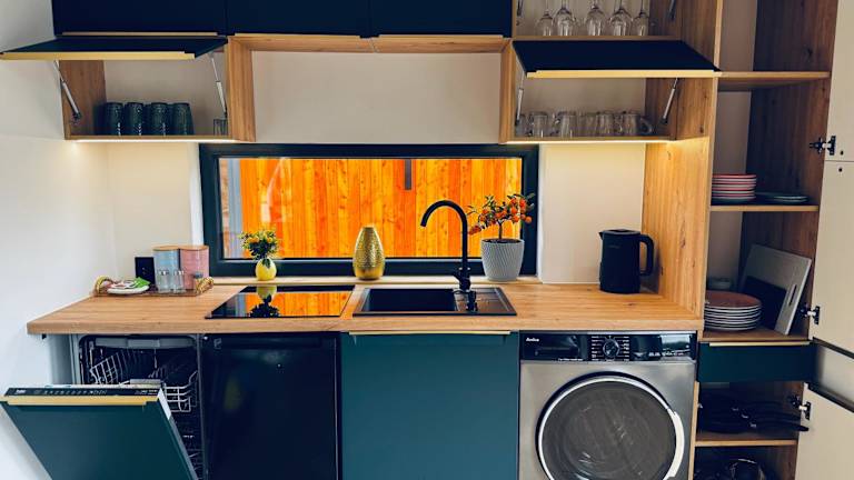 Die Unterkunft bietet verschiedene Wohneinheiten, die mit einem Sitzbereich, einem Flachbild-TV, einer voll ausgestatteten Küche mit Kühlschrank und Geschirrspüler sowie einem eigenen Badezimmer mit Dusche ausgestattet sind. Alle Zimmer verfügen über einen Balkon mit Flussblick.