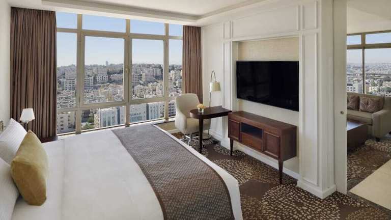 Das Mövenpick Hotel Amman ist ein modernes Hochhaus in einem Geschäftsviertel in Amman und bietet Reisenden einen komfortablen Ausgangspunkt, um die Stadt und ihre Sehenswürdigkeiten zu erkunden. Mit einer Vielzahl von Zimmern und Suiten, verschiedenen kulinarischen Erlebnissen, einem Fitnesscenter, einem Wellnessbereich und einem Außenpool bietet das Hotel alles, was Sie für einen angenehmen Aufenthalt benötigen.