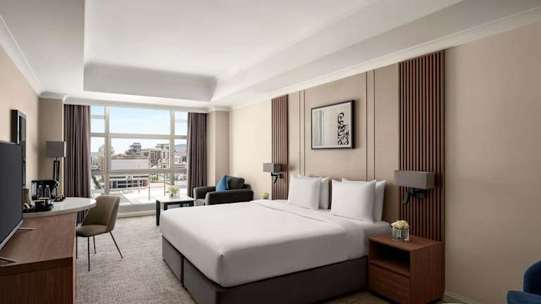 Die Zimmer sind klimatisiert und modern eingerichtet, ausgestattet mit einem Kingsizebett, einem Sofabett und Zustellbetten auf Anfrage. Zu den Annehmlichkeiten zählen ein Safe, eine Minibar, ein Kühlschrank, eine Tee- und Kaffeemaschine sowie ein Schreibtisch. Des Weiteren stehen ein Telefon, Sat-TV und kostenloses WLAN zur Verfügung. Die Badezimmer sind mit einer Dusche, Kosmetikartikeln, einem Haartrockner und Hausschuhen ausgestattet. Es sind auch rollstuhlgerechte Zimmer mit barrierefreiem Bad buchbar.