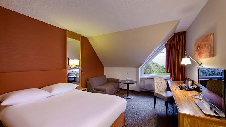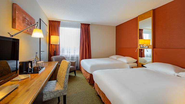 Alle unsere Hotelzimmer verfügen über High Speed Internet, Direktwahltelefon mit Voicemail, Fernseher und Radio, Minibar, Safe, Haartrockner, einen gut beleuchteten Arbeitsbereich und einen komfortablen Sitzbereich.