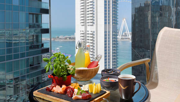 "Das Mövenpick Jumeirah Beach Hotel befindet sich direkt an der Promenade ""The Walk"" in Dubai, nur wenige Gehminuten vom feinsandigen Strand ""JBR Beach"" entfernt. Genießen Sie die Nähe zum öffentlichen Jumeirah Beach und erkunden Sie die Umgebung, die mit zahlreichen Einkaufs- und Unterhaltungsmöglichkeiten lockt. Die Sehenswürdigkeit Dubai Marina ist nur 1,3 km entfernt, das Einkaufszentrum Nakheel Mall erreichen Sie nach 8 km."