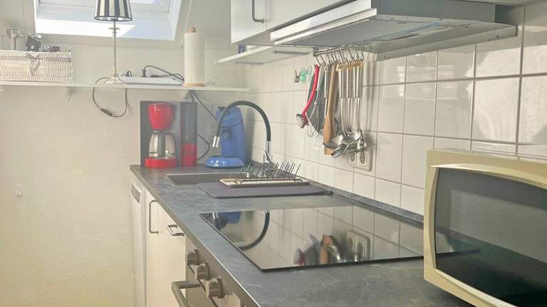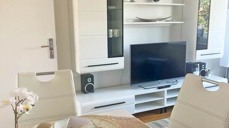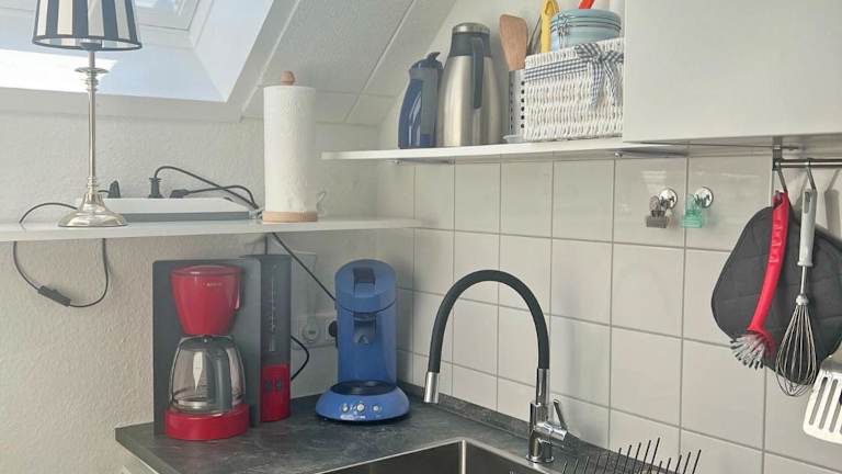 Die Ferienwohnung verfügt über einen Balkon und ist mit einem Satelliten-Flachbildfernseher ausgestattet. Die Küchenzeile ist mit einem Kühlschrank, Geschirrspüler, einem Ofen, einer Kaffeemaschine und einem Wasserkocher ausgestattet.