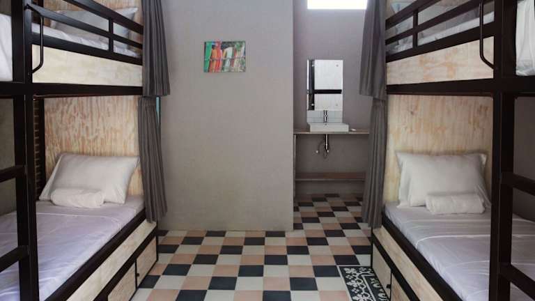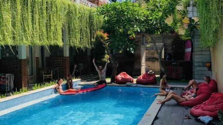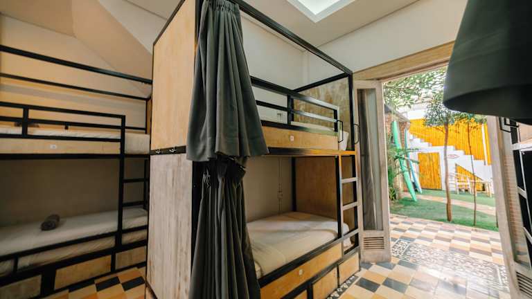 Das Mojosurf Camp Canggu in Canggu ist die ideale Unterkunft für Reisende, die nach einer entspannten und unterhaltsamen Zeit suchen. Mit kostenfreiem WLAN, einem Außenpool und einer Terrasse bietet das Hostel alles, was Sie für einen angenehmen Aufenthalt benötigen. Genießen Sie eine Mahlzeit im Restaurant oder entspannen Sie an der Bar. Die Zimmer sind komfortabel und einige bieten einen Balkon mit Pool- oder Gartenblick. Freuen Sie sich auf Aktivitäten wie Wassersport, Wandern, Radfahren und Reiten in der Umgebung. Der Strand Echo Beach und der Strand Batu Bolong Beach sind nur einen kurzen Spaziergang entfernt.