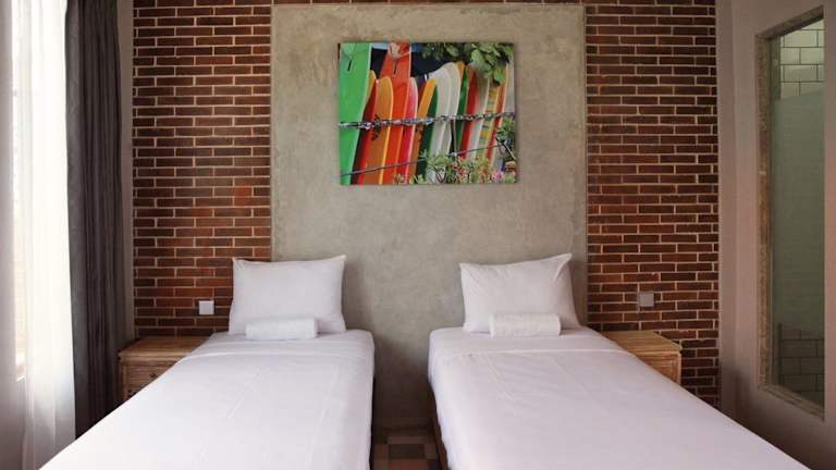 Die Zimmer im Mojosurf Camp Canggu sind komfortabel und bieten alles, was Sie für einen angenehmen Aufenthalt benötigen. Einige Zimmer verfügen über einen eigenen Balkon mit Pool- oder Gartenblick. Die Zimmer haben entweder ein eigenes Bad oder ein Gemeinschaftsbad mit einer Dusche. Die Unterkunft verfügt auch über eine Gemeinschaftslounge, in der Sie sich entspannen und andere Gäste treffen können.