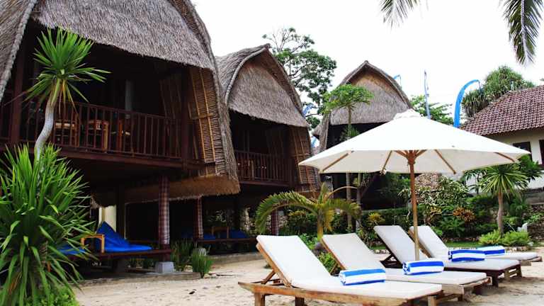 Das MolaMola House am Strand Mushroom Bay auf der Insel Nusa Lembongan ist eine hervorragende Wahl für Reisende, die nach einer entspannten und erholsamen Unterkunft suchen. Mit kostenfreiem WLAN und der Möglichkeit, Schnorchel- und Kanuzubehör zu nutzen, bietet das Hotel alles, was man für einen unvergesslichen Aufenthalt benötigt. Die Zimmer sind klimatisiert und mit Moskitonetzen ausgestattet und bieten einen atemberaubenden Blick auf den Garten oder das Meer. Der hauseigene Coffee Shop serviert eine Vielzahl von Gerichten und Getränken, darunter Bio-Kaffee, frische Säfte und Cocktails.