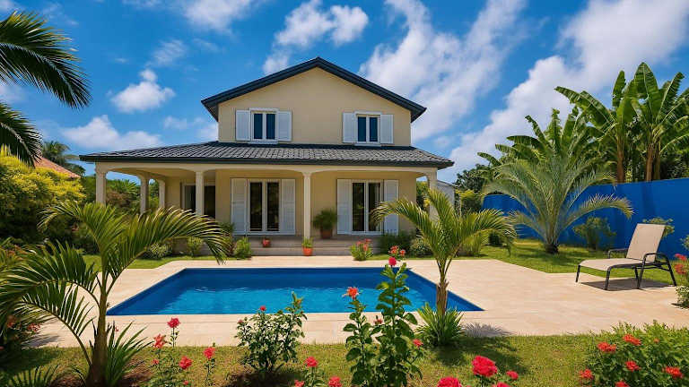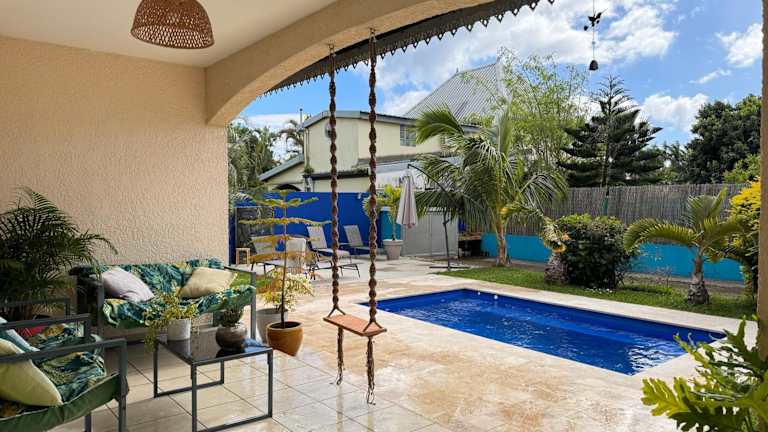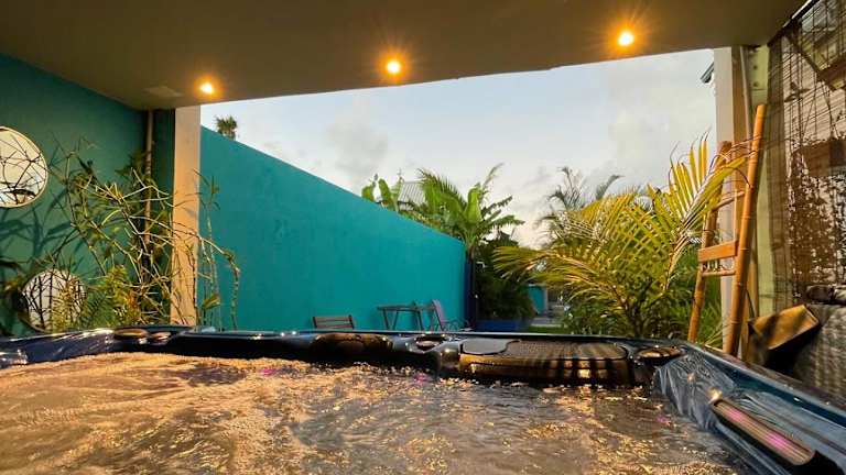 Mon ti Kaz Mon ti Bonheur bietet Übernachtungsmöglichkeiten mit kostenlosem WLAN, Klimaanlage und Zugang zu einem Garten mit einem Außenpool. Zusätzlich steht ein Whirlpool zur Verfügung.