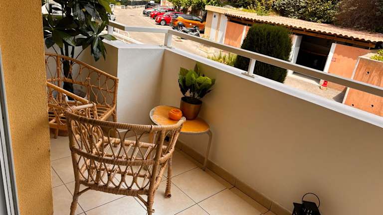 Die Ferienwohnung umfasst 1 Schlafzimmer, ein Wohnzimmer, eine voll ausgestattete Küche mit Kühlschrank und Kaffeemaschine sowie ein Badezimmer mit Dusche und kostenlosen Pflegeprodukten. Handtücher und Bettwäsche werden bereitgestellt. Zur Einrichtung gehören zudem Klimaanlage, Balkon und Terrasse.