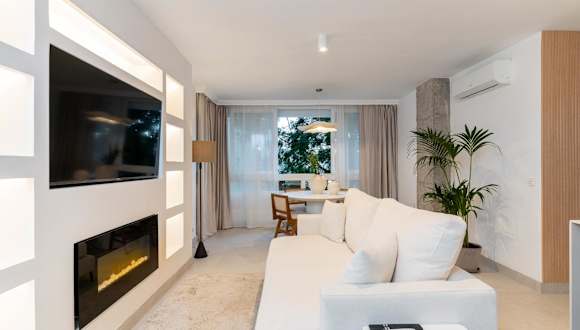 Die Ferienwohnung umfasst drei separate Schlafzimmer und ein Wohnzimmer. Eine voll ausgestattete Küche ermöglicht die Selbstverpflegung. Es stehen zwei Badezimmer zur Verfügung. Zur Ausstattung gehört zudem ein Flachbild-TV und die Unterkunft ist klimatisiert.