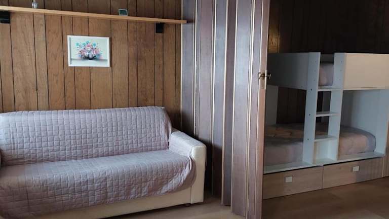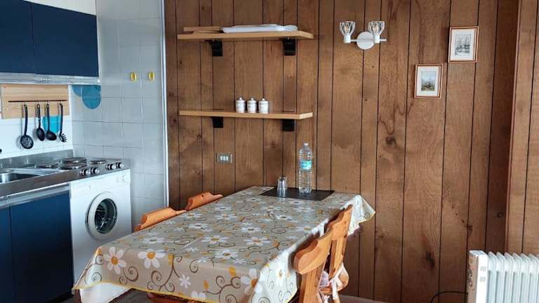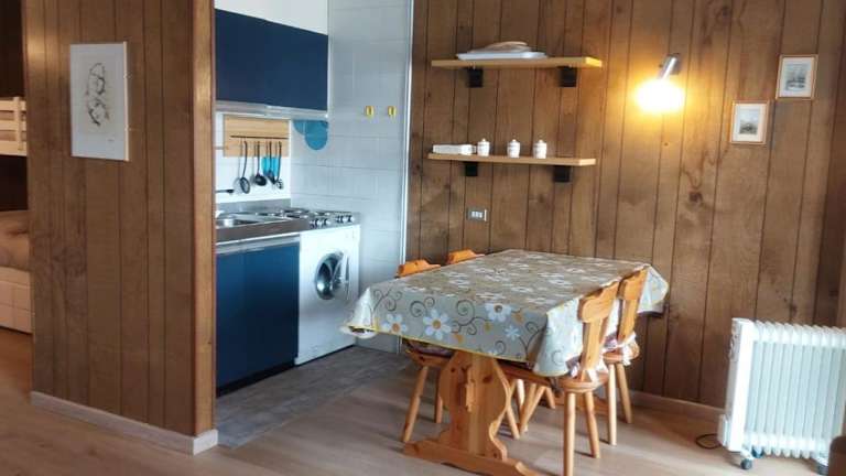 Das Apartment im Monolocale sulle piste del Cervino Residence Rododendro bietet einen gemütlichen Sitzbereich, eine voll ausgestattete Küche mit einem Kühlschrank und einen Flachbild-Sat-TV. Die Unterkunft ist ideal für Paare oder kleine Gruppen, die eine komfortable und gut ausgestattete Unterkunft suchen.