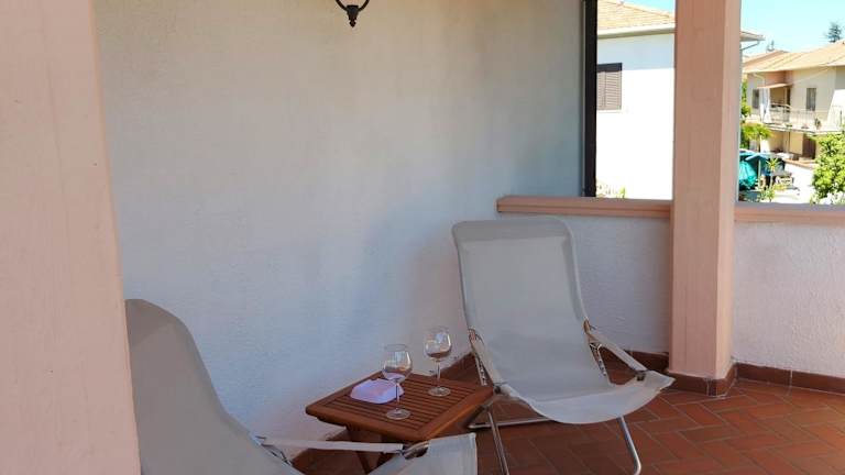 Die Unterkunft Monolocale x 2 verfügt über eine Terrasse und einen Balkon, die einen Ausblick auf das Meer bieten.
