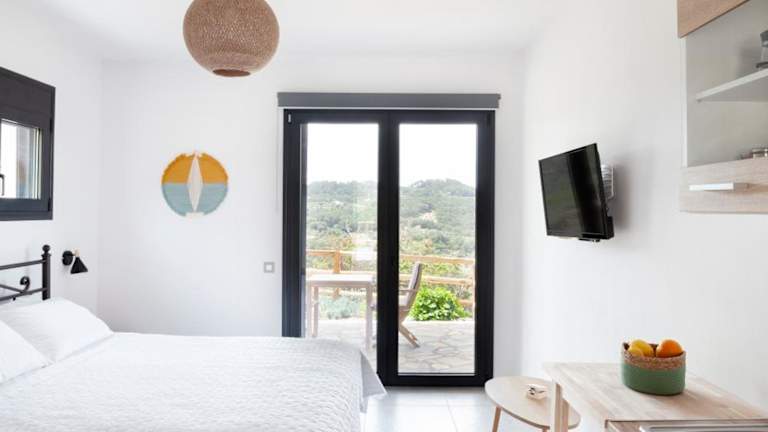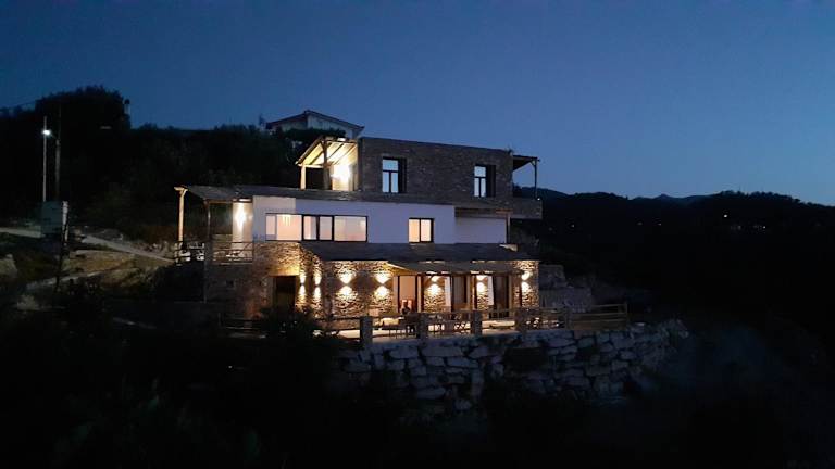Die Monopati Eco Villas - Villa Hypatia bieten einen atemberaubenden Meerblick und komfortable Unterkünfte mit Terrasse und Balkon. Die Villa liegt in einer ruhigen Gegend, etwa 13 km von Kampos entfernt, und bietet einen Garten und kostenfreie Privatparkplätze. Die klimatisierte Villa verfügt über ein Schlafzimmer, ein Wohnzimmer, eine voll ausgestattete Küche und ein Badezimmer mit Dusche und kostenfreien Pflegeprodukten. Handtücher und Bettwäsche werden gestellt. Die Umgebung bietet Möglichkeiten zur Erkundung, wie das Volksmuseum von Vrakades und die Burg Koskina.