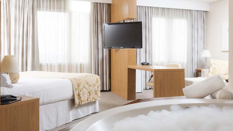 Im Monreale Hotel Sao Jose dos Campos stehen Ihnen 148 Zimmer zur Verfügung. Jedes Zimmer ist mit modernem Komfort ausgestattet und verfügt über eine Klimaanlage, ein Doppelbett, einen Safe und eine Minibar. Zur weiteren Ausstattung gehören ein Kühlschrank, ein Telefon, ein Flachbildfernseher und kostenfreies WLAN. Die Badezimmer sind mit einer Dusche und einem Haartrockner ausgestattet. Es gibt auch rollstuhlgerechte Zimmer mit barrierefreiem Bad.