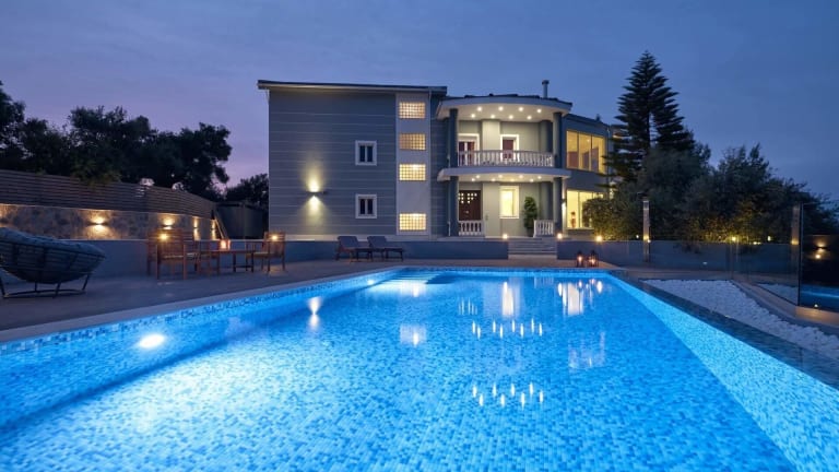 Die Mont Bleu Luxury Villa befindet sich in Zakynthos-Stadt, in der Nähe des Platzes Dionisios Solomos und des Hafens. Die Lage der Villa bietet einen atemberaubenden Blick auf das Meer und ist von einer malerischen Umgebung umgeben. Die Villa liegt nur wenige Kilometer vom internationalen Flughafen Zakynthos entfernt und bietet einen bequemen Zugang zu verschiedenen Sehenswürdigkeiten und Aktivitäten in der Umgebung.