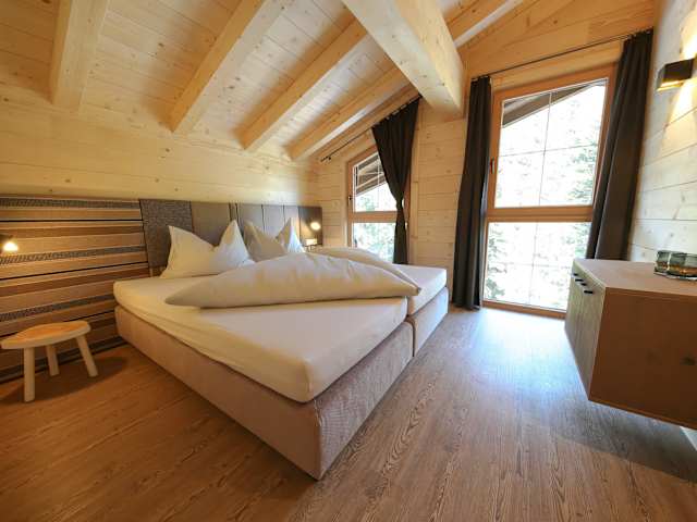 22 Ferienwohnungen/Appartements mit voll ausgestatteter Klein-Küche, Wohnbereich mit TV, Doppelzimmer, Juniorsuiten, Dusche, WC 3 Chalets mit je 4 Schlafzimmern, 2 Bädern, 136 m² Wohnfläche, Wohnzimmer mit Soundanlage und TV, Kamin, voll ausgestattete Küche, Terrasse