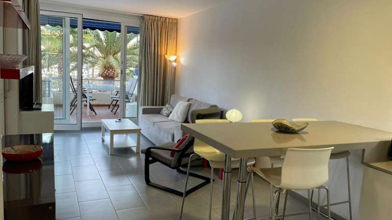 Die Ferienwohnung verfügt über zwei Schlafzimmer, ein Wohnzimmer, ein Badezimmer mit Dusche sowie eine gut ausgestattete Küche mit Kühlschrank und Geschirrspüler. Weiterhin sind ein Flachbild-TV sowie eine Terrasse mit Meerblick vorhanden. Handtücher und Bettwäsche werden bereitgestellt.