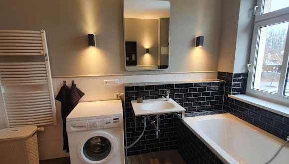 Die Monteurswohnung Roßwein - Zentral - Küche bietet Übernachtungsmöglichkeiten in einem zentral gelegenen Umfeld. Die Unterkunft umfasst eine gemütliche Ferienwohnung mit Zugang zu modernen Annehmlichkeiten.