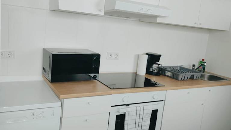 Die Ferienwohnung ist ausgestattet mit drei Schlafzimmern, einer Küche, die einen Kühlschrank und einen Geschirrspüler umfasst, sowie einem Badezimmer mit Dusche, Haartrockner und Waschmaschine. Handtücher und Bettwäsche werden bereitgestellt. In der Unterkunft stehen Gartenmöbel zur Verfügung.