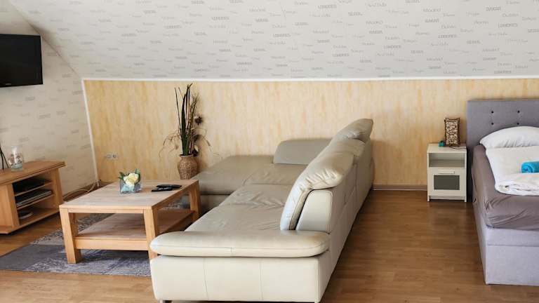 Die Monteurwohnung Ha-Wei erstreckt sich über 90 m² und bietet eine komfortable Ferienwohnung mit Gartenblick. Die Unterkunft verfügt über eine Terrasse, Grillmöglichkeiten sowie einen Balkon, der zur Entspannung einlädt. Es handelt sich um eine Nichtraucherunterkunft, die von einem privaten Gastgeber geführt wird.
