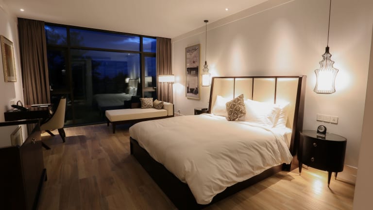 Die Zimmer im Montgomerie Links Hotel & Villas sind geräumig und bieten einen komfortablen Rückzugsort nach einem Tag auf dem Golfplatz. Jedes Zimmer verfügt über einen Kleiderschrank und große Fenster mit Blick auf den Golfplatz. Zur Ausstattung gehören ein Flachbild-Kabel-TV und ein eigenes Bad mit Dusche, Hausschuhen und einem Haartrockner.