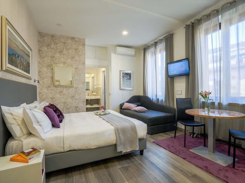 Am Morgen erwartet Sie ein süßes italienisches Frühstück mit einem Croissant und einem Cappuccino. Das Frühstück wird in einem nahegelegenen Café serviert. In der Umgebung des B&B finden Sie auch eine Vielzahl von Restaurants, in denen Sie lokale Spezialitäten und internationale Gerichte genießen können.
