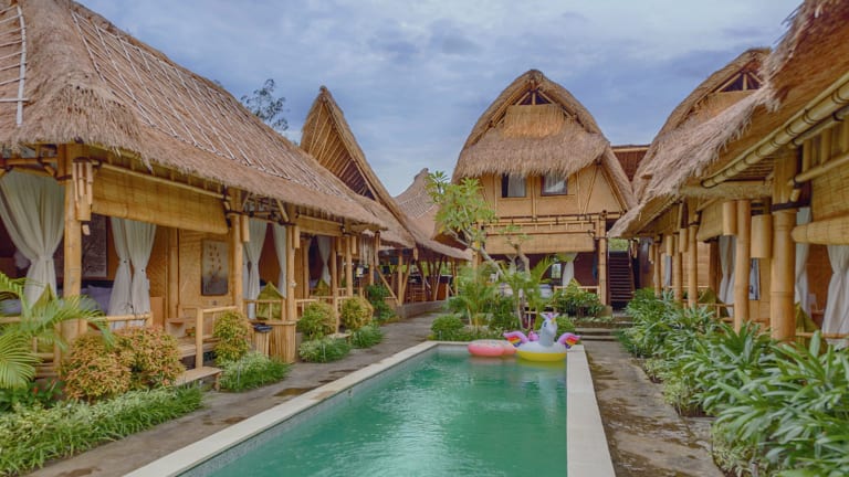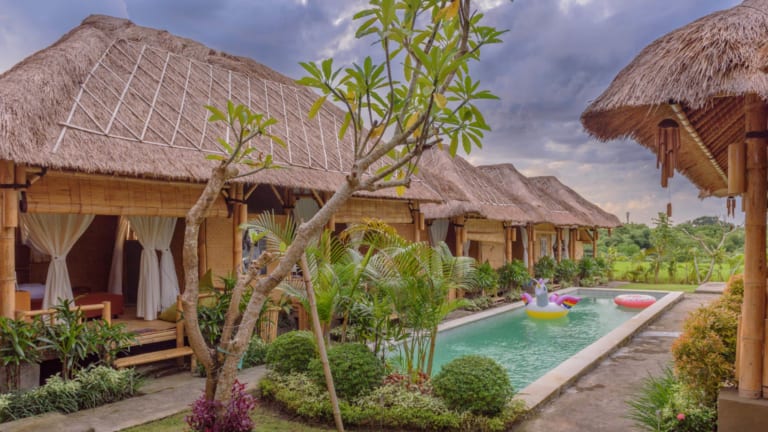 Das Moon Bamboo in Canggu bietet seinen Gästen eine komfortable Unterkunft mit kostenfreiem WLAN, einem Außenpool und einem freundlichen Personal, das gerne behilflich ist. Genießen Sie ein asiatisches Frühstück und entspannen Sie im Garten oder auf der Terrasse. Die Unterkunft befindet sich in der Nähe von beliebten Sehenswürdigkeiten und bietet einen kostenpflichtigen Flughafentransfer.