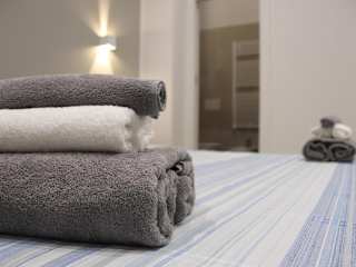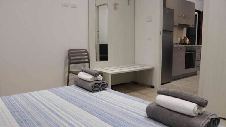 Die Ferienwohnung ist klimatisiert und umfasst ein Schlafzimmer, ein Wohnzimmer und eine voll ausgestattete Küche mit Kühlschrank und Wasserkocher. Das Badezimmer ist mit einem Bidet und einer Dusche ausgestattet. Handtücher und Bettwäsche werden bereitgestellt.
