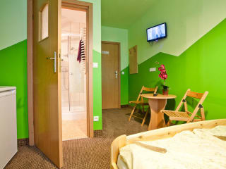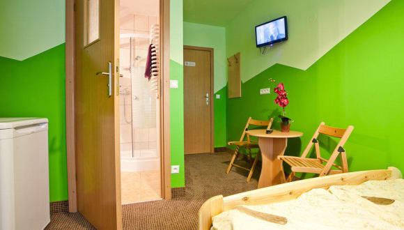 Die Zimmer im Moon Hostel Kraków sind in verschiedenen, frischen Farben gestaltet und bieten Ihnen ein eigenes Bad, einen LCD-TV und einen Kühlschrank.