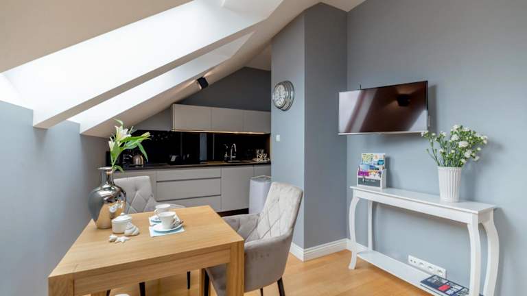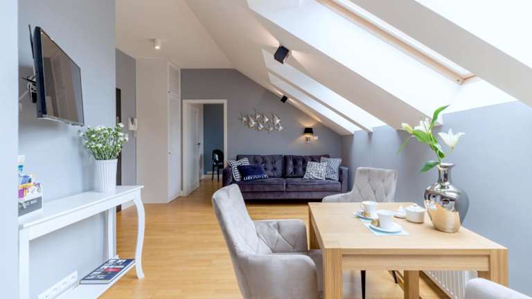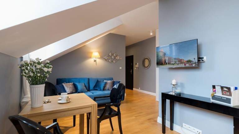 Moon River Apartments Gdansk Old Town bietet Übernachtungsmöglichkeiten mit kostenlosem WLAN und einem kostenlosen Privatparkplatz. Die Apartments verfügen über eine Veranda oder einen Patio mit Stadtblick sowie einen Sitzbereich und einen Kabel-Flachbild-TV.