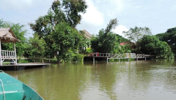 Sieben kleine Bungalows für zwei Personen in typischem Thai-Stil liegen direkt am Moon River; von ihren gedeckten Terrassen gewähren sie einen Blick auf den Fluss mit seinen wechselnden Wasserständen und Stimmungen. Ein weiterer Bungalow mit zwei geräumigen Schlafzimmern, gemeinsamem Bad und gedeckter Terrasse wurde kürzlich hinzugefügt. Ein größeres Ferienhaus enthält zwei geräumige Wohneinheiten [Zimmer, Bad] und eine große gedeckte Terrasse. Die ganze Anlage ist in tropische Vegetation gebettet.