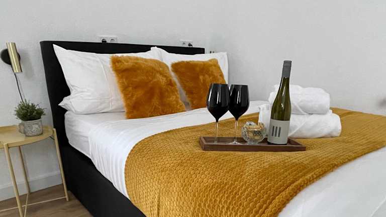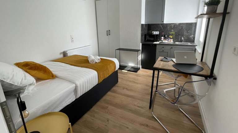 Die Ferienwohnung verfügt über ein Schlafzimmer und bietet ein Badezimmer, das mit einer Dusche und kostenlosen Pflegeprodukten ausgestattet ist. Zusätzlich werden Handtücher und Bettwäsche bereitgestellt. Die Unterkunft verfügt über verschiedene Annehmlichkeiten für den Aufenthalt, einschließlich Heizung, Flachbild-TV sowie weiterer Ausstattung, um den Gästen einen komfortablen Aufenthalt zu ermöglichen.