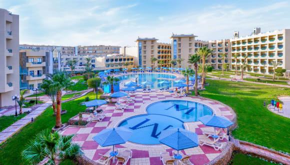 Das Hotel Hotelux Marina Beach Hurghada befindet sich in Hurghada, nur etwa 2 km vom Stadtzentrum entfernt. Der nächste Flughafen ist der Flughafen Hurghada, der ca. 7 km entfernt liegt. Das Resort bietet einen direkten Zugang zum Strand, der mit Liegen und Sonnenschirmen ausgestattet ist. In der Umgebung gibt es verschiedene Sehenswürdigkeiten und Aktivitäten, die Gäste erkunden können.