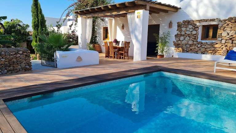 Im eigenen Garten der Villa können Sie Ihr Mittag- und Abendessen im Freien genießen. Hier finden Sie Gartenmöbel, darunter einen Essbereich und Sonnenliegen, um Ihre Zeit im Freien so angenehm wie möglich zu gestalten. Wenn Sie die lokale Küche erkunden möchten, erreichen Sie das Stadtzentrum von Santa Eulària des Riu mit einer Auswahl an traditionellen balearischen Restaurants in nur 10 Minuten mit dem Auto.