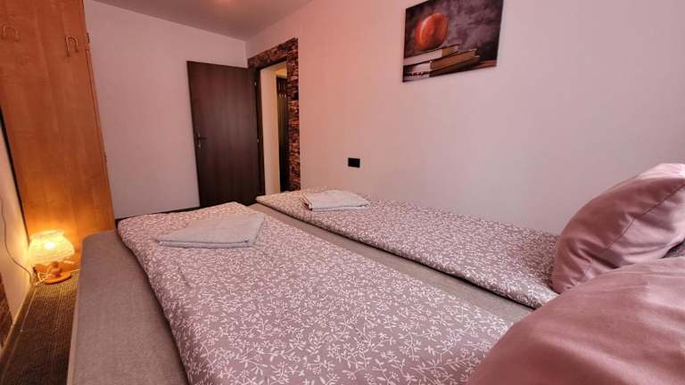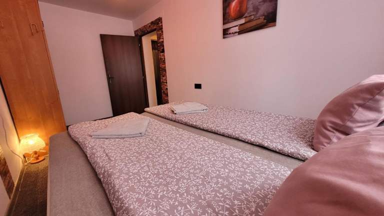 Die Ferienwohnung umfasst 2 Schlafzimmer und ein Wohnzimmer, das mit einem Flachbild-TV mit Satellitenkanälen ausgestattet ist. Zudem steht eine voll ausgestattete Küche mit Kühlschrank und Geschirrspüler sowie ein Badezimmer mit Badewanne oder Dusche zur Verfügung. Handtücher und Bettwäsche werden bereitgestellt.