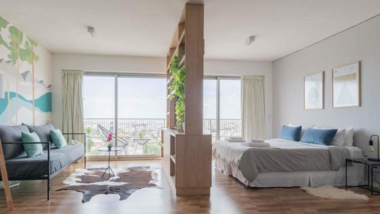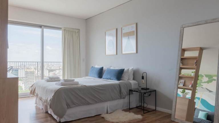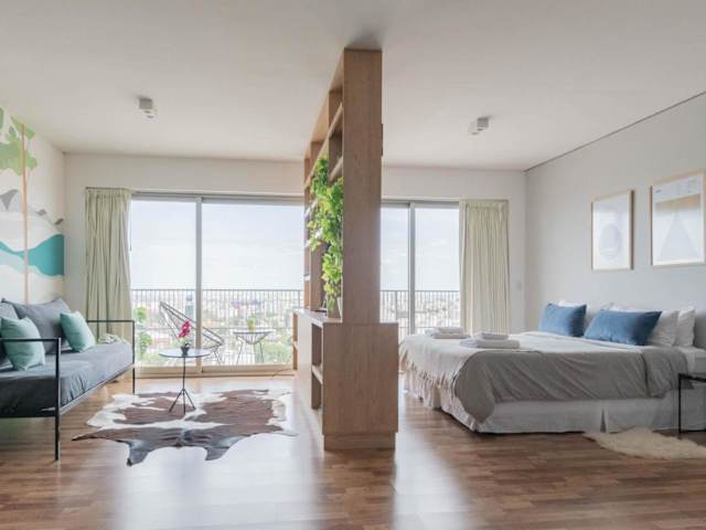 MOT Azopardo 700 'B' Lux Loft Pool Puerto Madero bietet Übernachtungsmöglichkeiten in einer Ferienwohnung mit Klimaanlage, kostenlosem WLAN, Zugang zu einem Garten mit Außenpool sowie weiteren Annehmlichkeiten wie einem Fitnesscenter und einer Sauna.