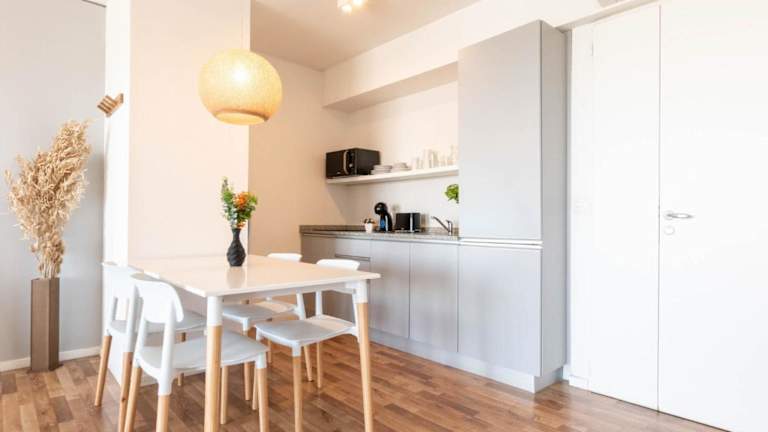 Die Ferienwohnung umfasst 2 Schlafzimmer, 1 Badezimmer, eine voll ausgestattete Küche sowie eine Veranda/Patiobereich mit Stadtblick. Zur Ausstattung gehören Bettwäsche, Handtücher und ein TV.