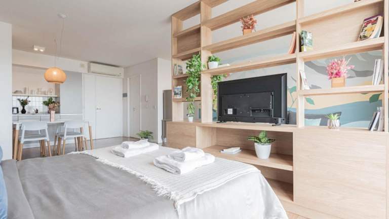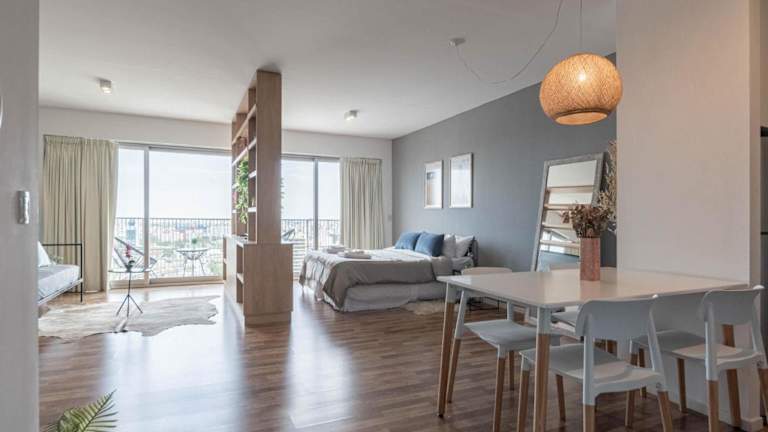 MOT Azopardo 700 'B' Lux Loft Pool Puerto Madero bietet Übernachtungsmöglichkeiten in einer Ferienwohnung mit Klimaanlage, kostenlosem WLAN, Zugang zu einem Garten mit Außenpool sowie weiteren Annehmlichkeiten wie einem Fitnesscenter und einer Sauna.