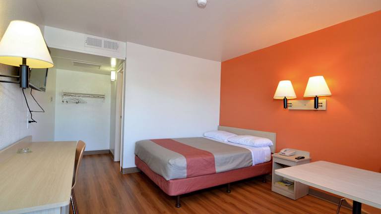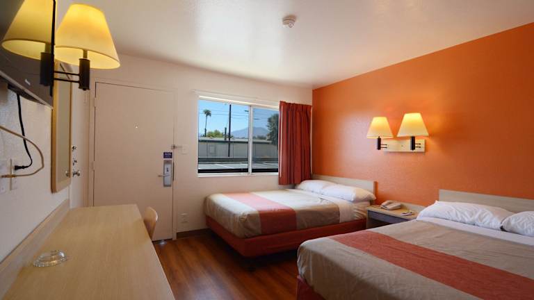 Die Zimmer im Motel 6 Indio sind klimatisiert und verfügen über ein eigenes Bad. Die Zimmer sind einfach eingerichtet mit hellen Holzmöbeln und bieten ein helles und freundliches Ambiente. Zur Ausstattung gehört auch Kabel-TV mit erweiterten Kanälen für Unterhaltungsmöglichkeiten.